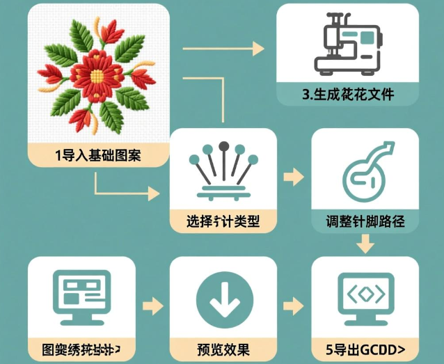 - 绣精细的花瓣需要高密度针迹,大面积色块可适当降低密度